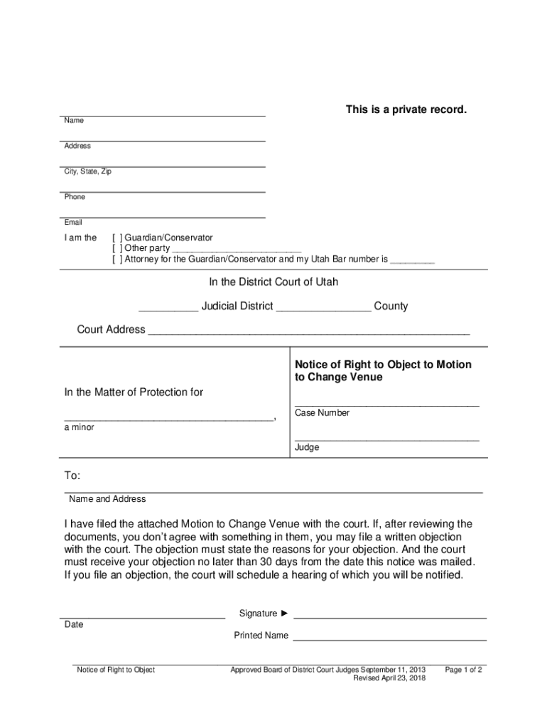 [ ] Attorney for the Guardian/Conservator and my Utah Bar number is ___In the District