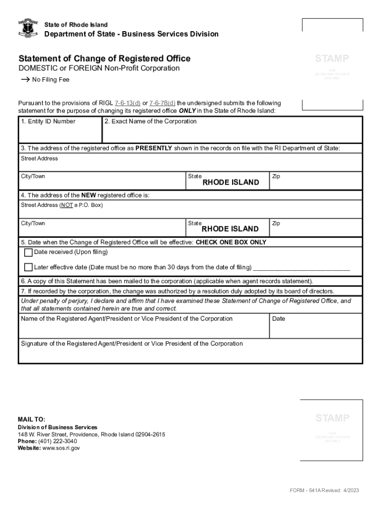 ! State of Rhode Islands legal document should be typed. All illegible documents will be REJECTED. Department of State Business Services Division Instructions for Filing Nonprofit Corporation Statement