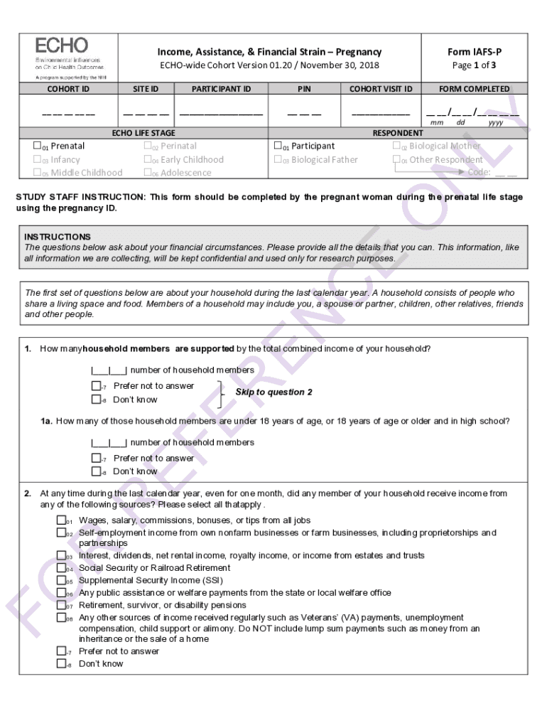 Income, Assistance, & Financial Strain PregnancyForm IA FSP