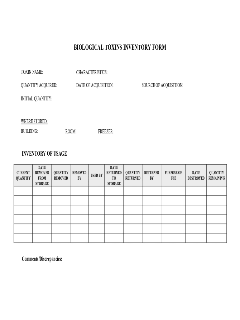 BIOLOGICAL TOXINS INVENTORY FORM