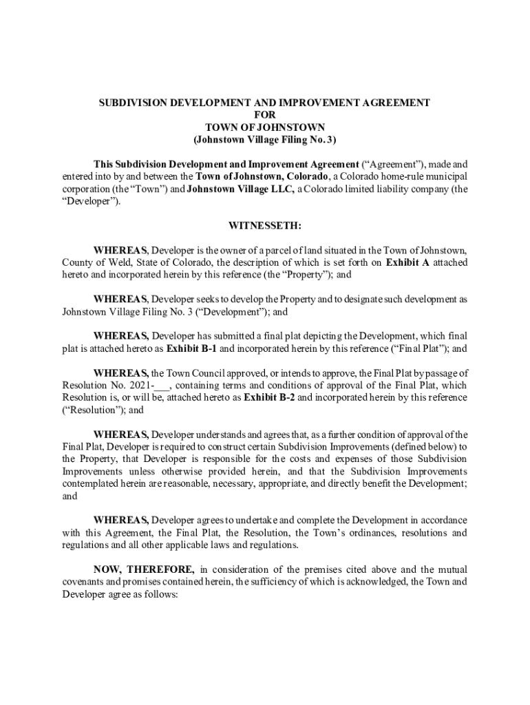 Get the free Development Agreement (Johnstown Village Filing No. 3) V3 12 06 21
