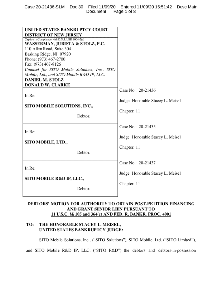 Case 2021436SLMDoc 30Filed 11/09/20 Entered 11/09/20 16:51:42 Document Page 1 of 8Desc Maintained STATES BANKRUPTCY COURT DISTRICT OF NEW JERSEY Caption in Compliance with D.N.J. LB 90042(c)WASSERMAN,
