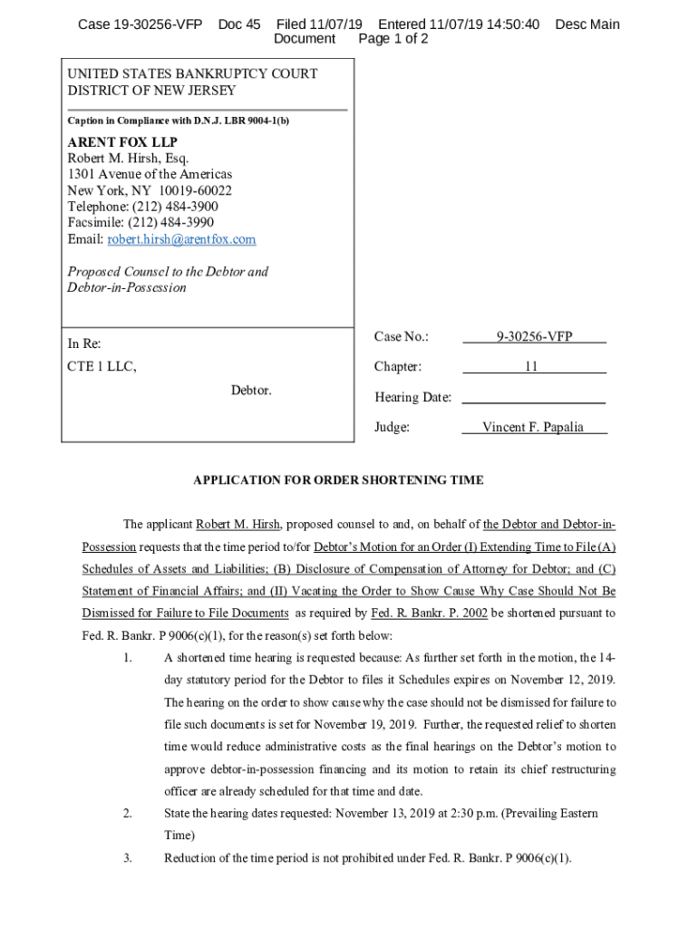 Case 1930256VFPDoc 45Filed 11/07/19 Entered 11/07/19 14:50:40 Document Page 1 of 2Desc Maintained STATES BANKRUPTCY COURT DISTRICT OF NEW JERSEY Caption in Compliance with D.N.J. LB 90041(b)AREN'T