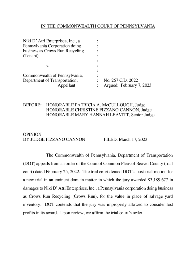 Get the free Niki D' Atri Enterprises, Inc. v. Com. of PA, DOT