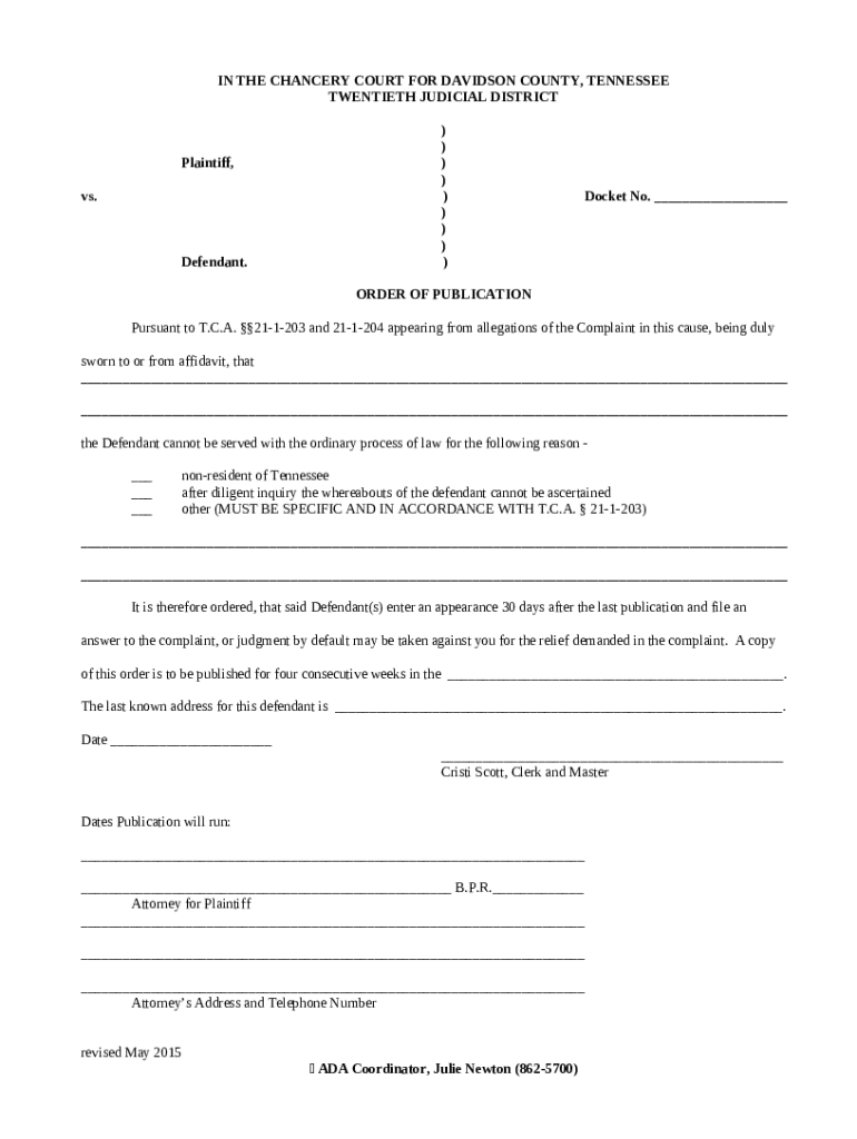 Nashville.gov - Chancery Court - Order of Publication: frequently asked questions