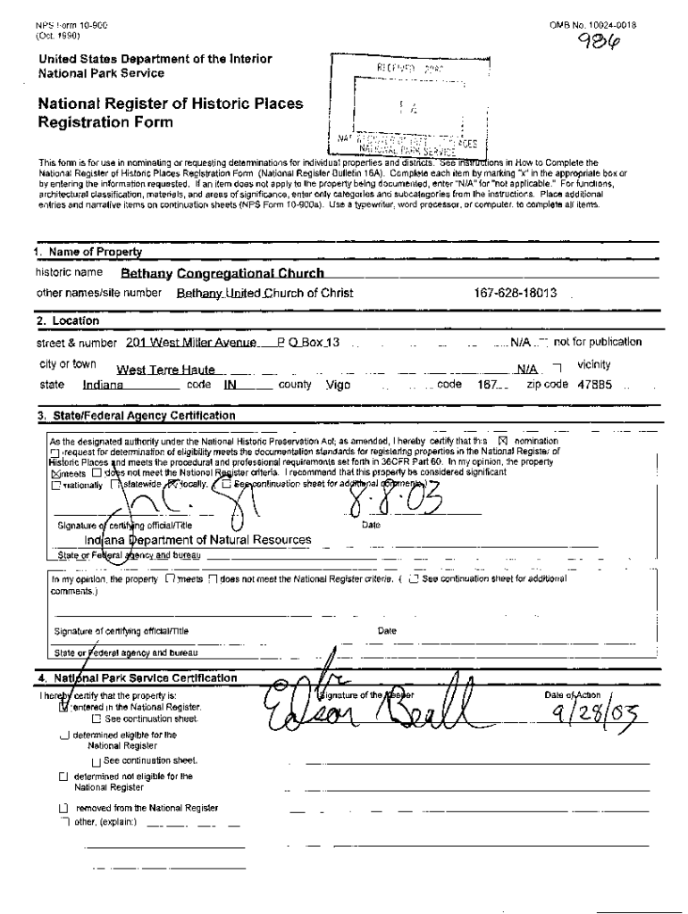NFS Form 10900 (Oct. 1990)OMB No. 100240018United States Department of the Interior National Park ServiceNational Register of Historic Places Registration Form This form is for use in nominating or
