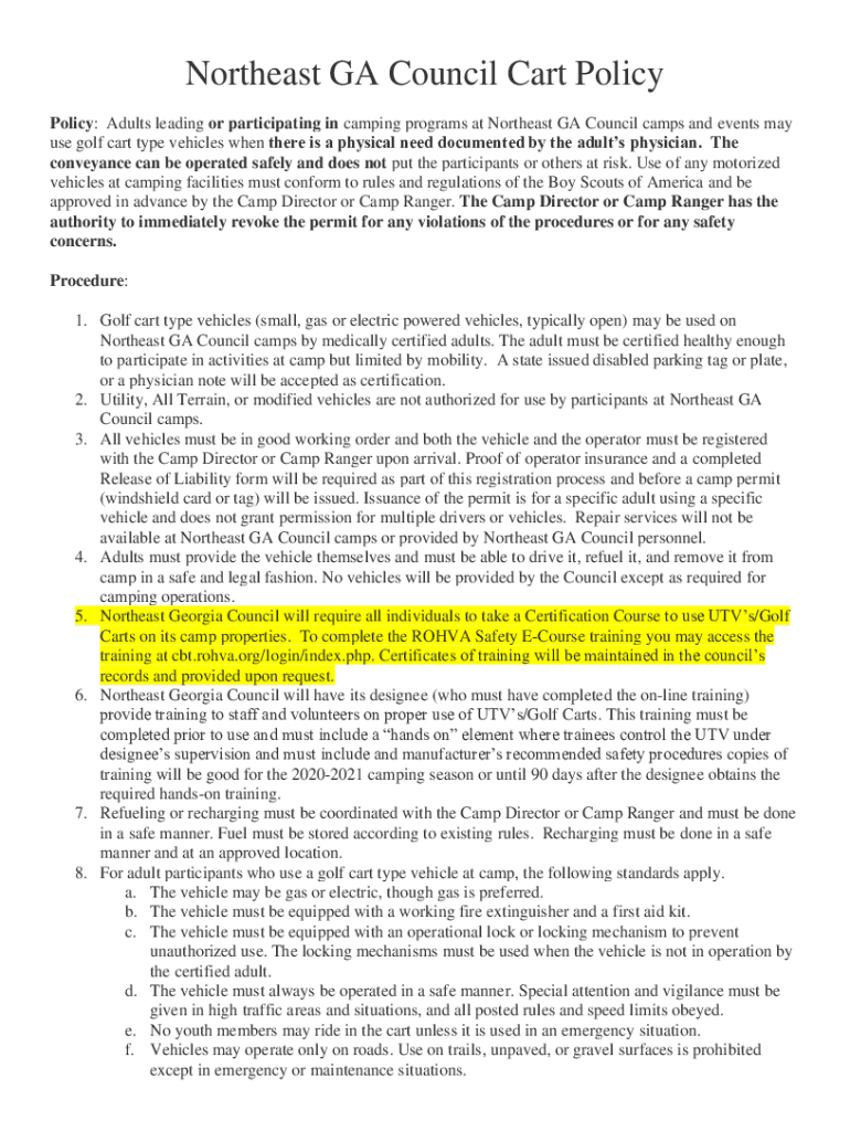 Get the free Northeast GA Council Cart Policy
