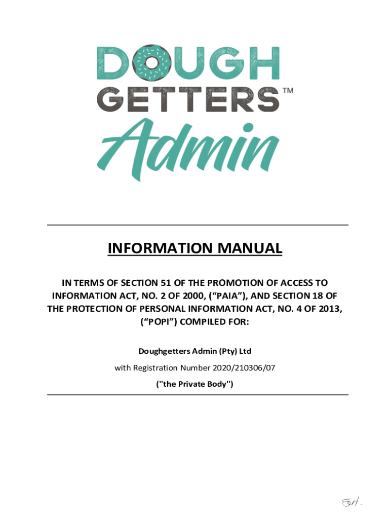 INFORMATION MANUAL IN TERMS OF SECTION 51 OF THE PROMOTION OF ACCESS TO INFORMATION ACT, NO. 2 OF 2000, (PAID), AND SECTION 18 OF THE PROTECTION OF PERSONAL INFORMATION ACT, NO. 4 OF 2013, (POP) COMPILED
