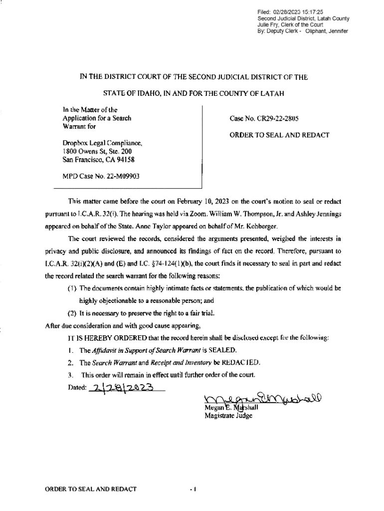 Get the free Order To Seal - Coeur Dalene Police Department Forensic ...