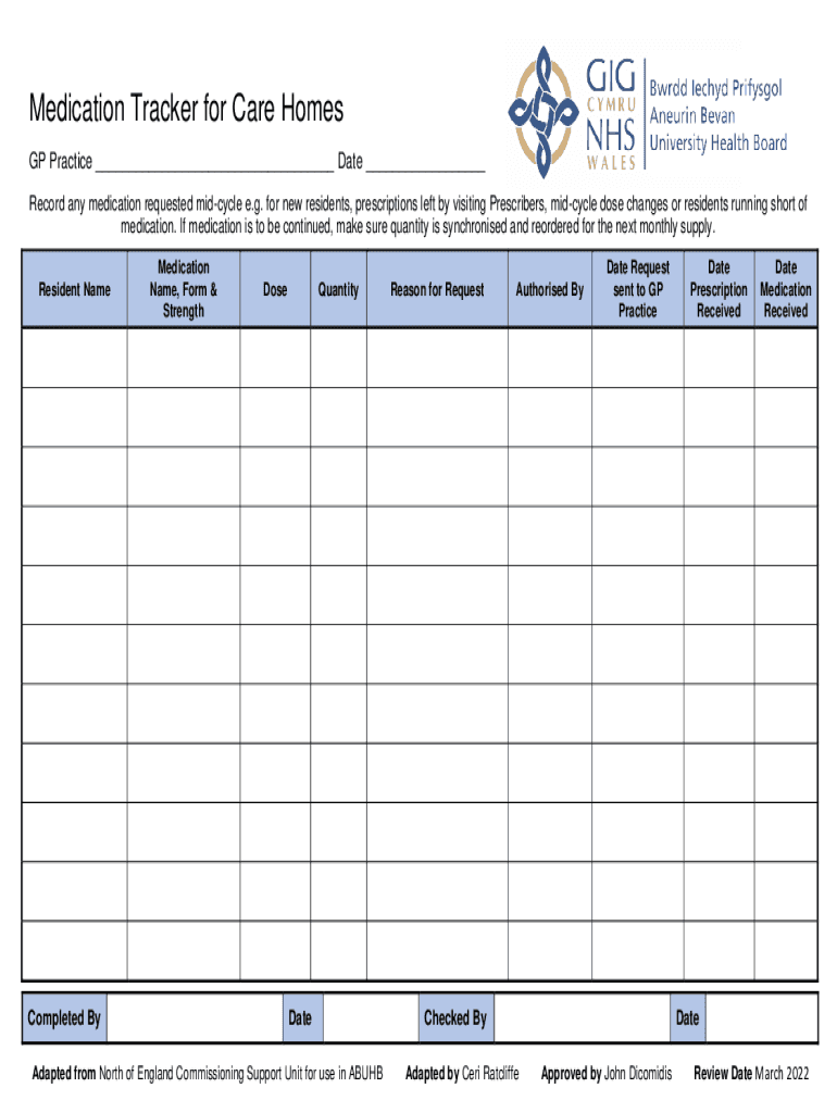 Record any medication requested midcycle e.g. for new residents, prescriptions left by visiting Prescribers, midcycle dose changes or residents