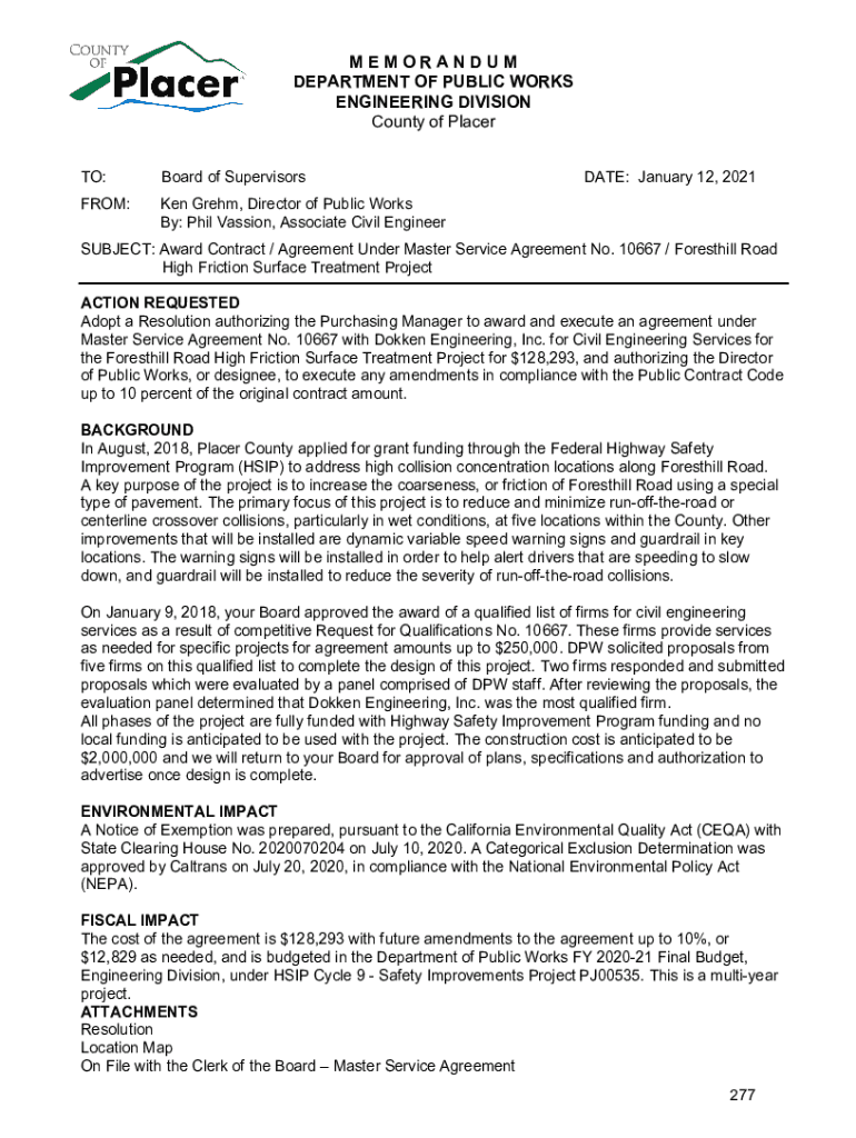 TO:Board of SupervisorsFROM:Ken Great, Director of Public Works