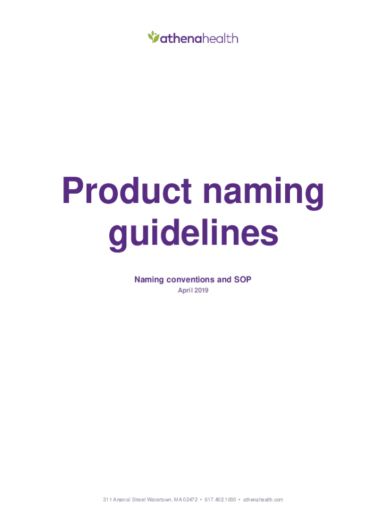 Product naming guidelines Naming conventions and SOP April 2019311 Arsenal Street Watertown, MA 02472 617.402.1000 athenahealth. Product naming guidelinesConventionsWhats changed? Of her time, product