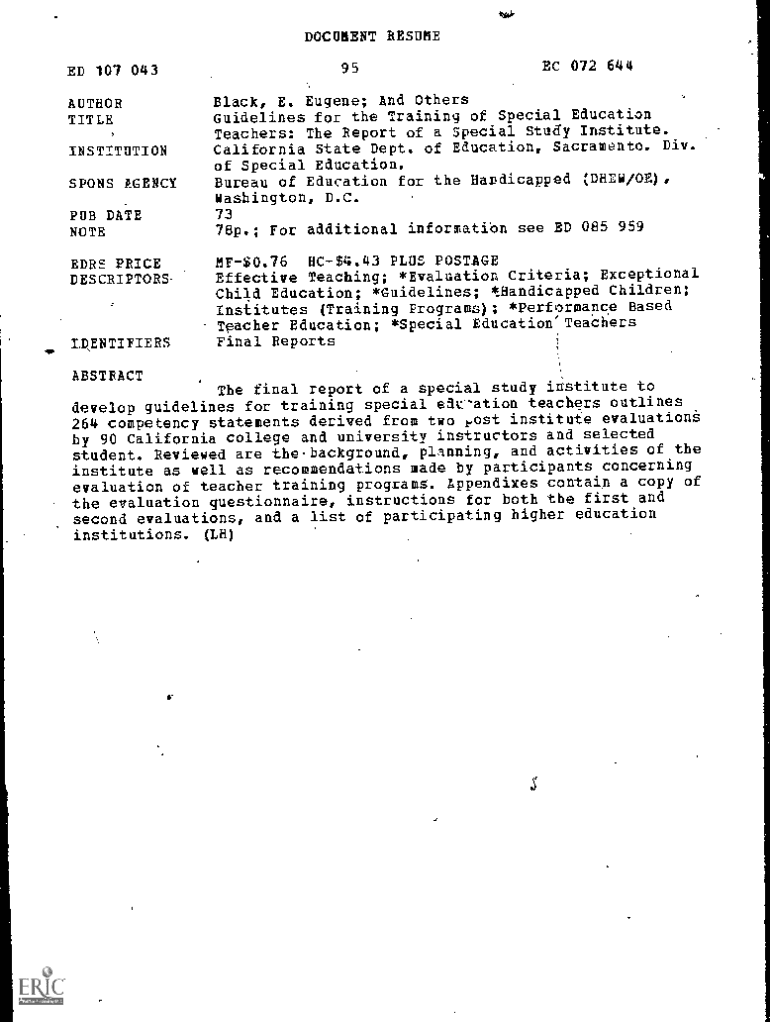 SONS AGENCY EC 072 644Black, E. Eugene; And Others