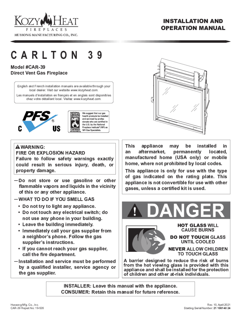 Get the free kozy heat CARLTON-39 CAR-39 Installation And ...