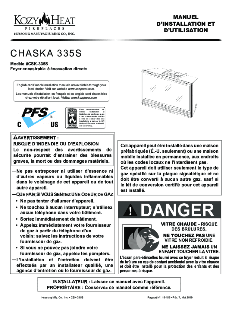 Obtenir le gratuit kozy heat CHASKA-335S Installation And Operation Manual