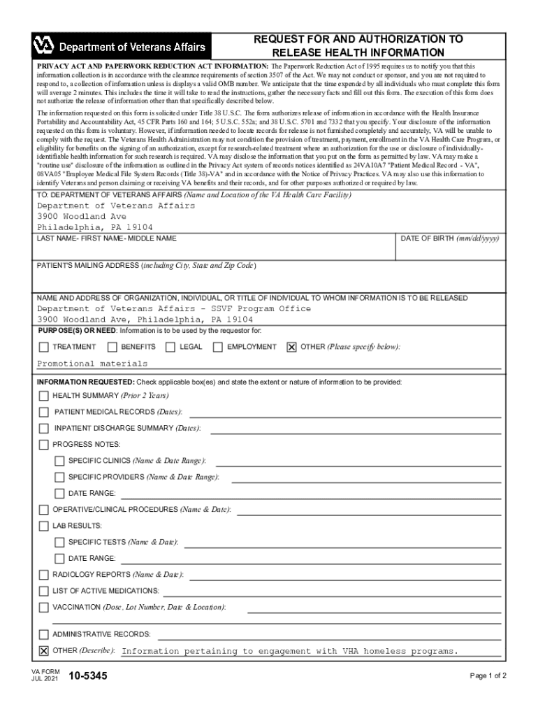 REQUEST FOR AND AUTHORIZATION TO RELEASE HEALTH INFORMATION PRIVACY ACT AND PAPERWORK REDUCTION ACT INFORMATION: The Paperwork Reduction Act of 1995 requires us to notify you that this information