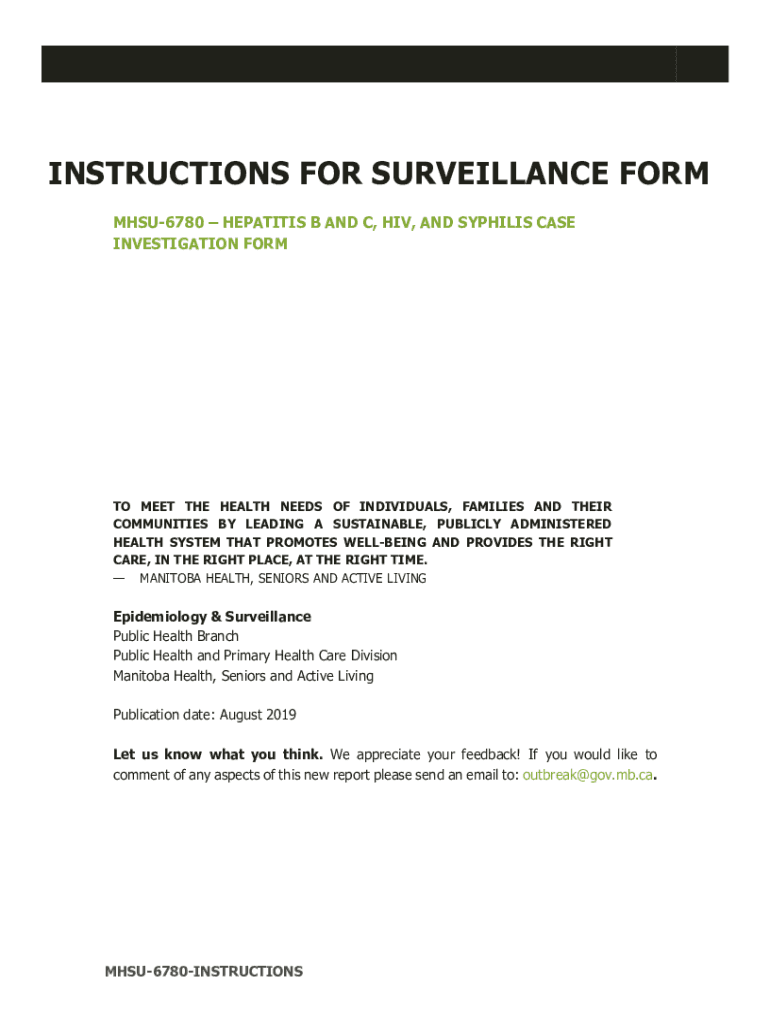INSTRUCTIONS FOR SURVEILLANCE FORM MHSU6780 HEPATITIS B AND C, HIV, AND SYPHILIS CASE INVESTIGATION FOR MTO MEET THE HEALTH NEEDS OF INDIVIDUALS, FAMILIES AND THEIR COMMUNITIES BY LEADING A SUSTAINABLE,