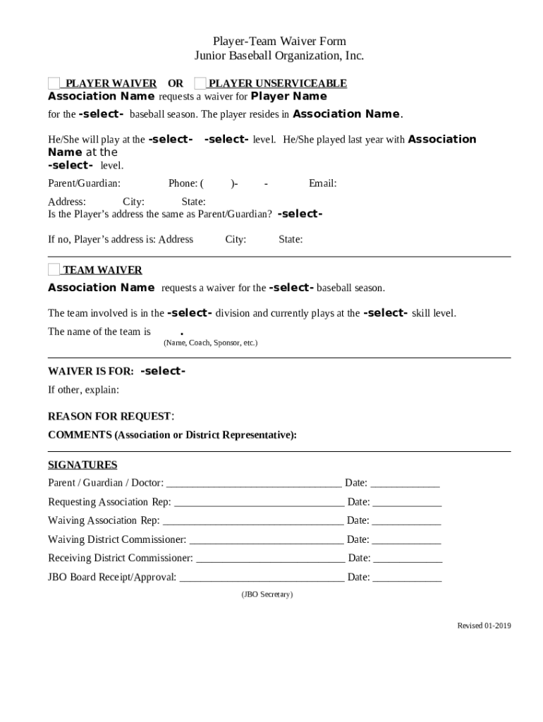 Instructions for the Player-Team Waiver - cloudfront.net form