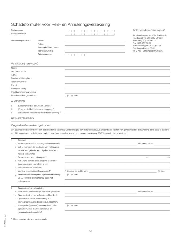 ASR Schadeverzekering N.V. PolisnummerSchadenummerVerzekeringsadviseurArchimedeslaan 10, 3584 BA Utrecht