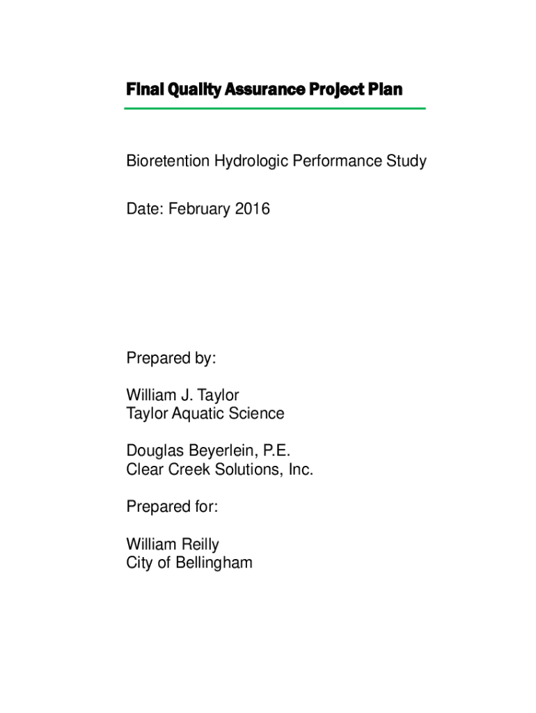 Final Quality Assurance Project PlanBioretention Hydrologic Performance Study