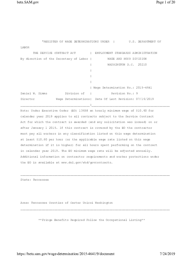 Beta.SAM.gov Page 1 of 20\” REGISTER OF WAGE DETERMINATIONS UNDER|U.S. DEPARTMENT LABOR THE SERVICE CONTRACT ACT|By direction of the Secretary of Labor | |EMPLOYMENT STANDARDS ADMINISTRATION WAGE