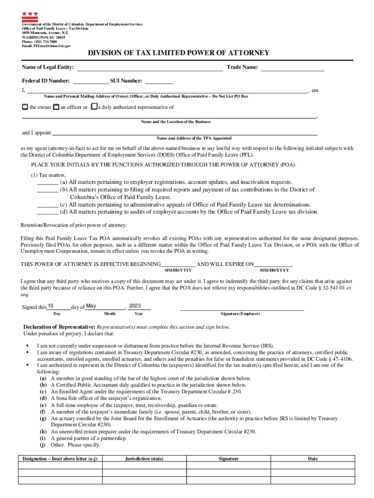 Get the free DIVISION OF TAX LIMITED POWER OF ATTORNEY