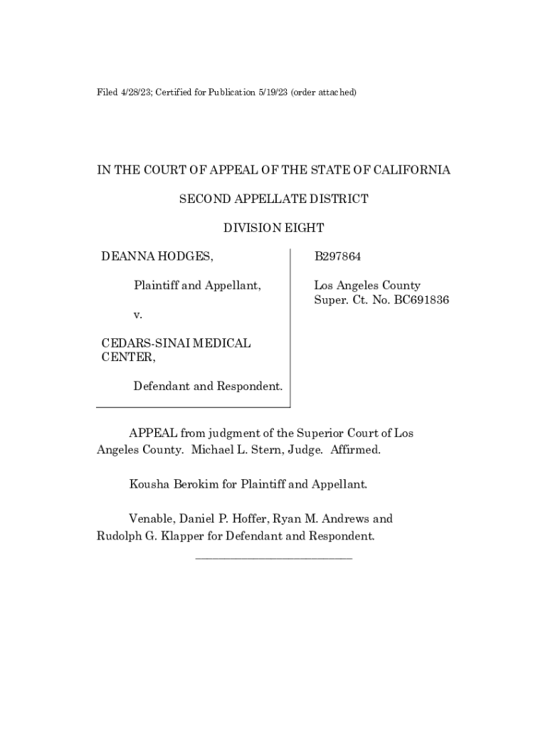 Filed 4/28/23; Certified for Publication 5/19/23 (order attached)IN THE COURT OF APPEAL OF THE STATE OF CALIFORNIA SECOND APPELLATE DISTRICT DIVISION EIGHT DEANNA HODGES, Plaintiff and Appellant,B297864
