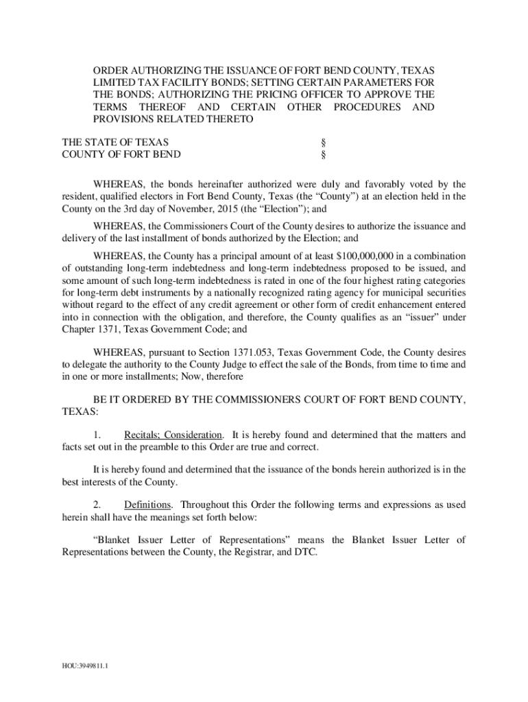Get the free order authorizing the issuance of fort bend county, texas
