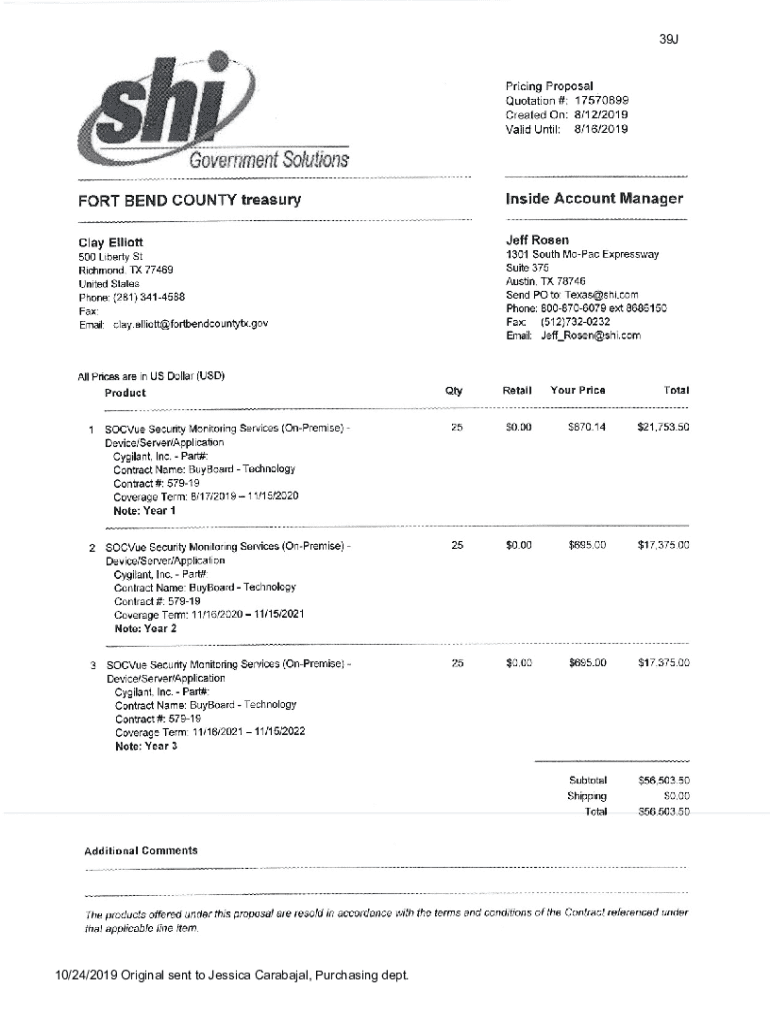 39J10/24/2019 Original sent to Jessica Carvajal, Purchasing dept. CERTIFICATE OF INTERESTED PARTIESFORM 1295 1 of 1OFFICE USE Incomplete Nos. 1 4 and 6 if there are interested parties. Complete Nos.