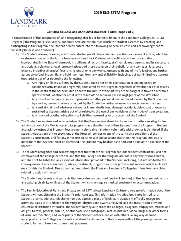 Get the free GENERAL RELEASE and ACKNOWLEDGEMENT FORM (page 1 of 2)