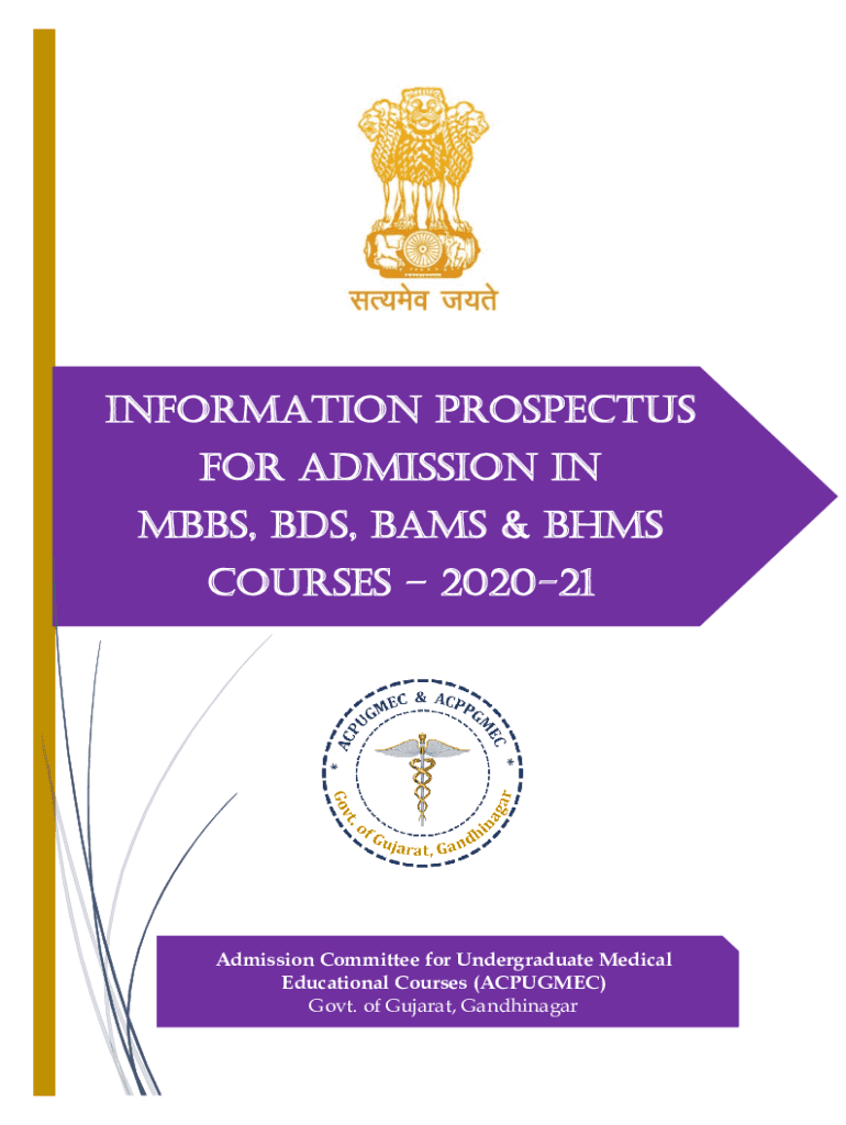Information Prospectus for admission in MBBS, BDS, BASS & BMS COURSES 202021Admission Committee for Undergraduate Medical Educational Courses (ACUMEN) Govt. of Gujarat, GandhinagarINDEX Description
