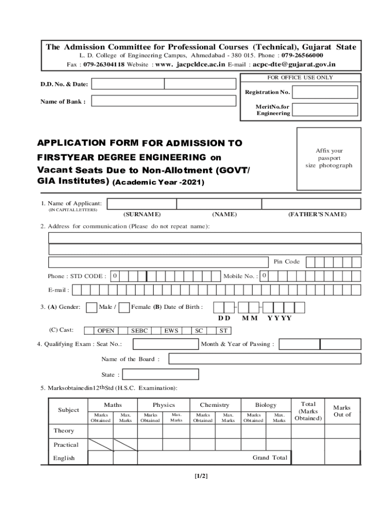 The Admission Committee for Professional Courses (Technical), Gujarat State L. D. College of Engineering Campus, Ahmedabad 380 015. Phone : 07926566000 Fax : 07926304118 Website : WWW. Jacpcldce.ac.in