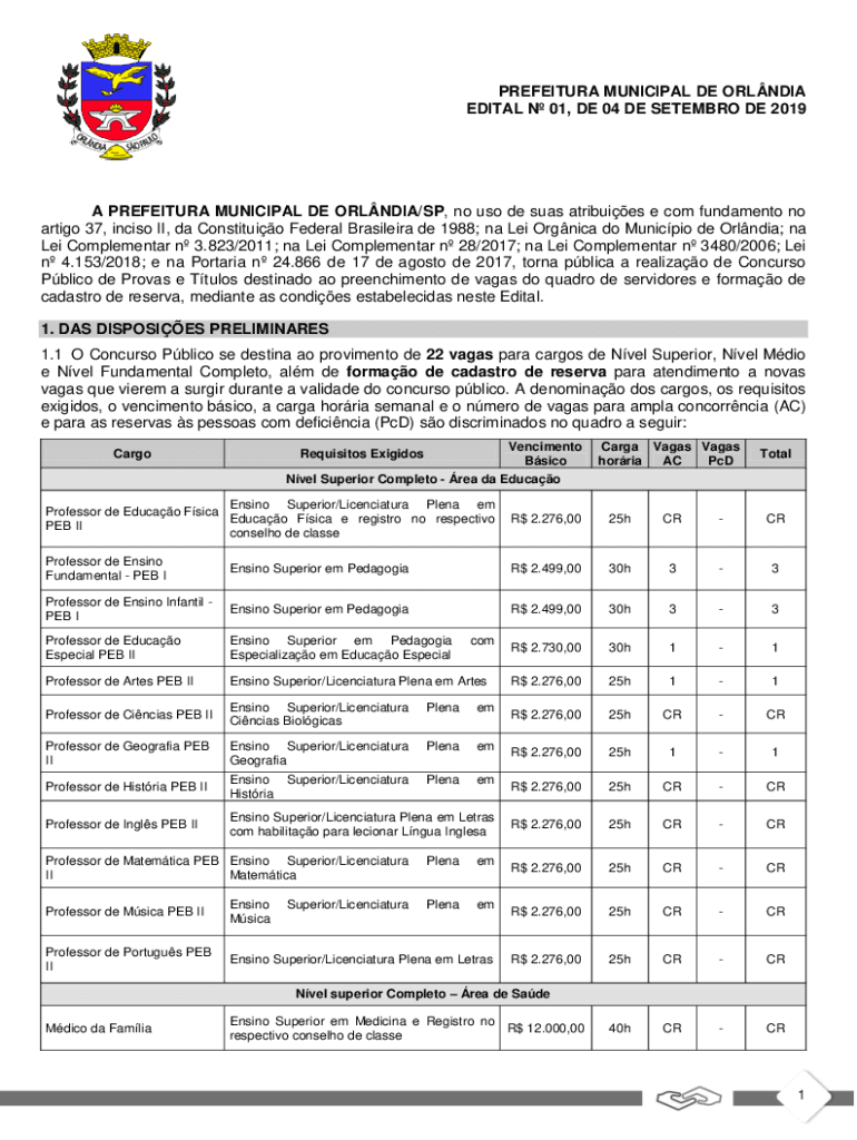 Obtenha o gratuito prefeitura municipal de orlndia edital n 1, de 21 de outubro ...