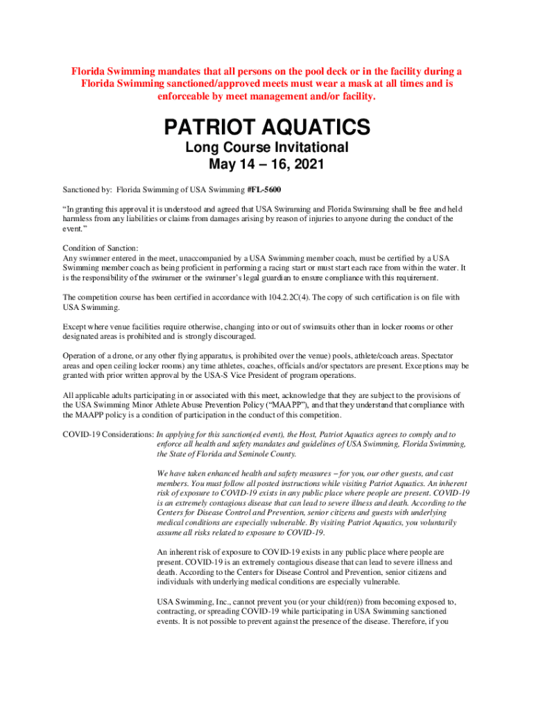 Fill out your florida swimming mandates that online with pdfFiller!