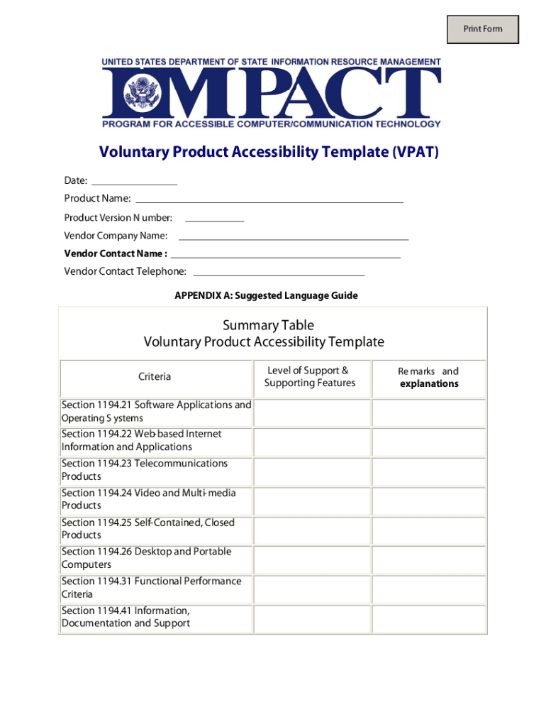 Template Vpat Form is not the form you're looking for?Search for another form here.