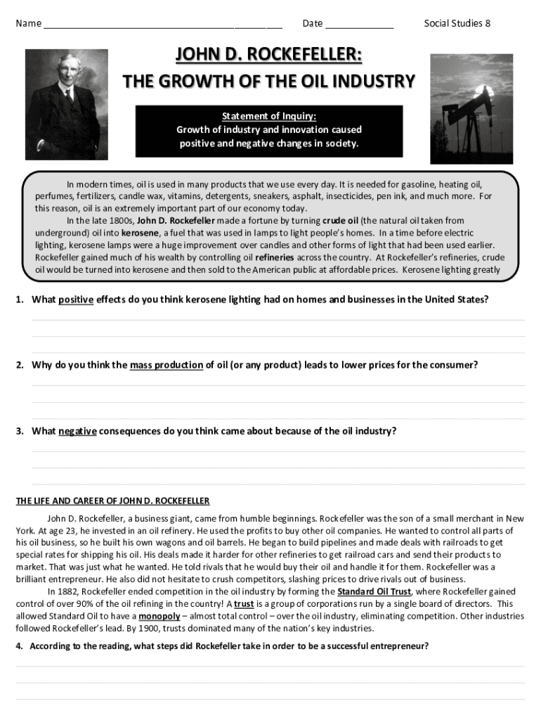 Get the free JOHN D. ROCKEFELLER: THE GROWTH OF THE OIL INDUSTRY