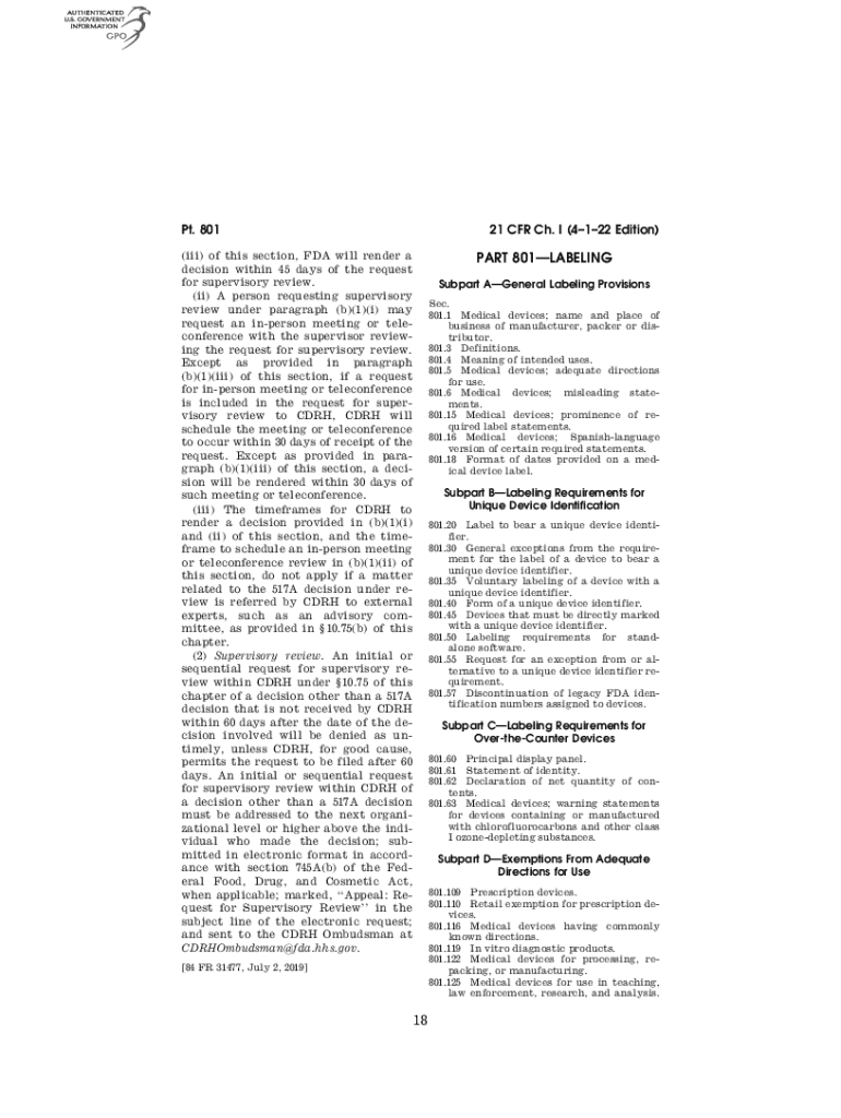 Pt. 80121 CFR Ch. I (4122 Edition)Payne on VMOFRWIN702 with $$_JOB(iii) of this section, FDA will render a decision within 45 days of the request for supervisory review. (ii) A person requesting supervisory
