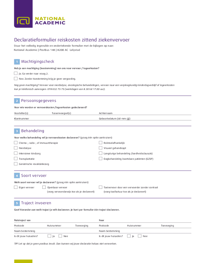 Declaratieformulier Rasmussen zit tend ziekenvervoer