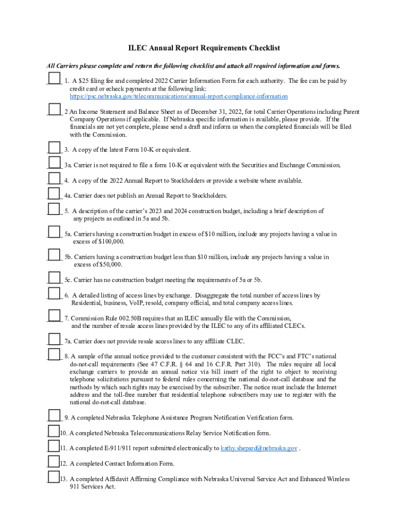 ALEC Annual Report Requirements Checklist All Carriers please complete and return the following checklist and attach all required information and forms. ___ 1. A $25 filing fee and completed 2022
