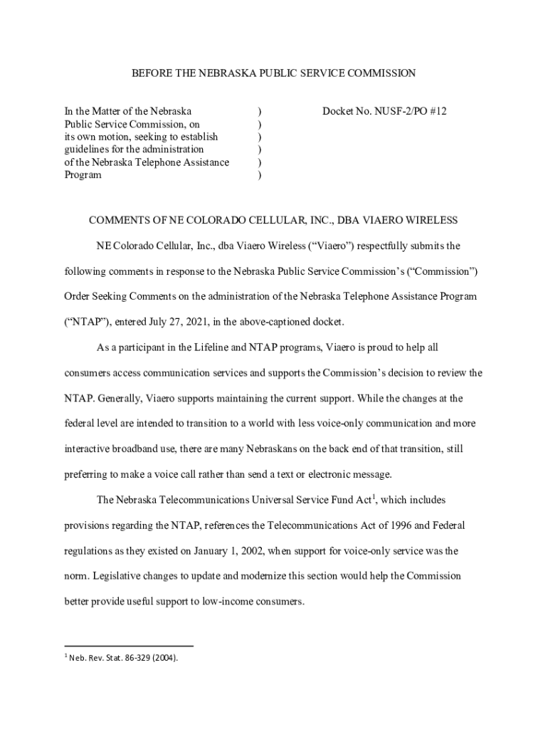 BEFORE THE NEBRASKA PUBLIC SERVICE COMMISSION In the Matter of the Nebraska Public Service Commission, on its own motion, seeking to establish guidelines for the administration of the Nebraska Telephone