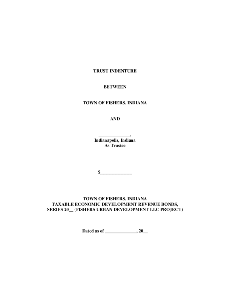 Get the free TRUST INDENTURE BETWEEN TOWN OF FISHERS, INDIANA ...