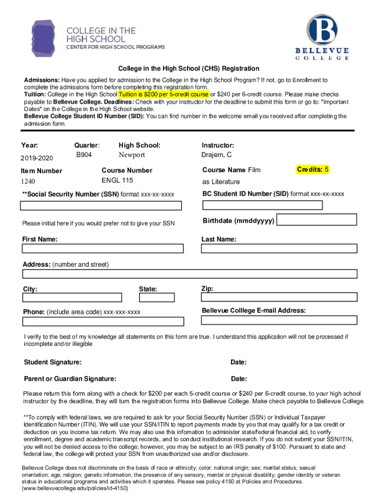 College in the High School (CHS) Registration Admissions: Have you applied for admission to the College in the High School Program? If not, go to Enrollment to complete the admissions form before