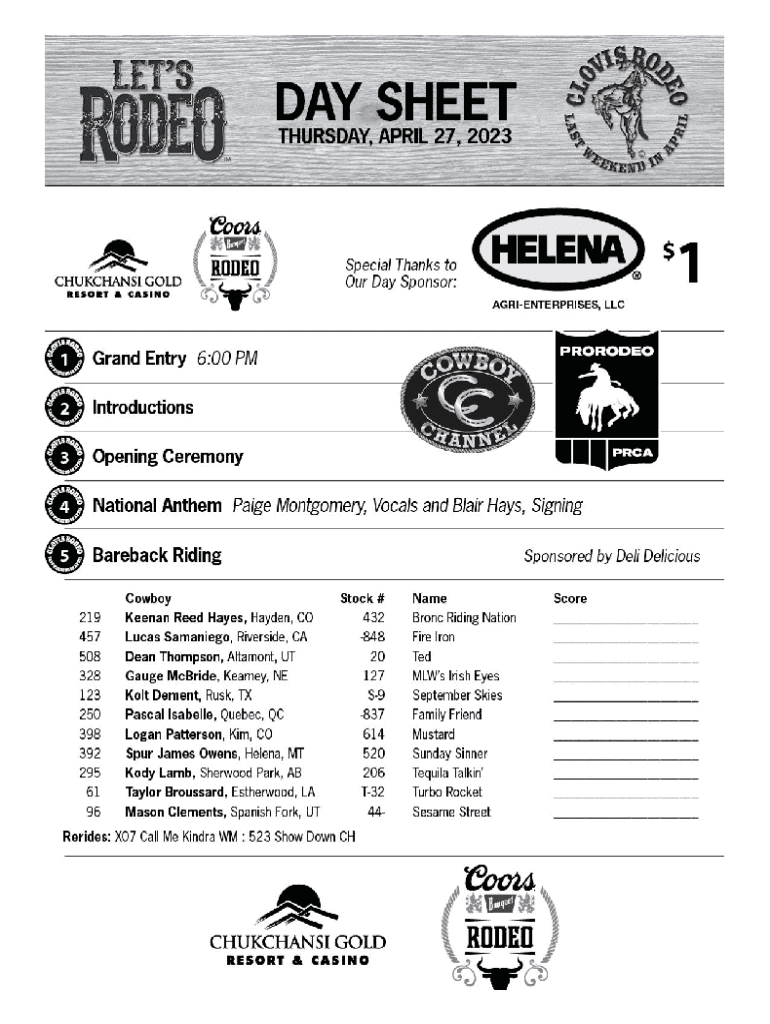 Fill out your Clovis Rodeo Association Day Sheet online with pdfFiller!