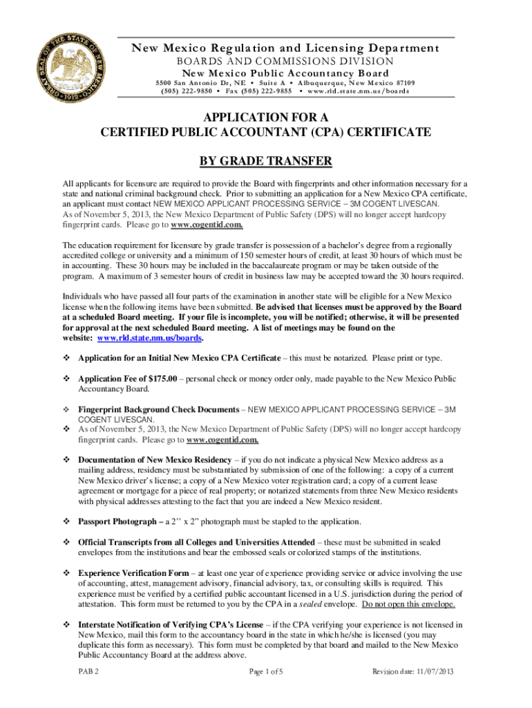 New Mexico Regulation and Licensing Department BOARDS AND COMMISSIONS DIVISION New Mexico Public Accountancy Board5500 San An ton Io Dr, N E S u it e A lb up u her EU e, New Mexico 871 09 (505) 222