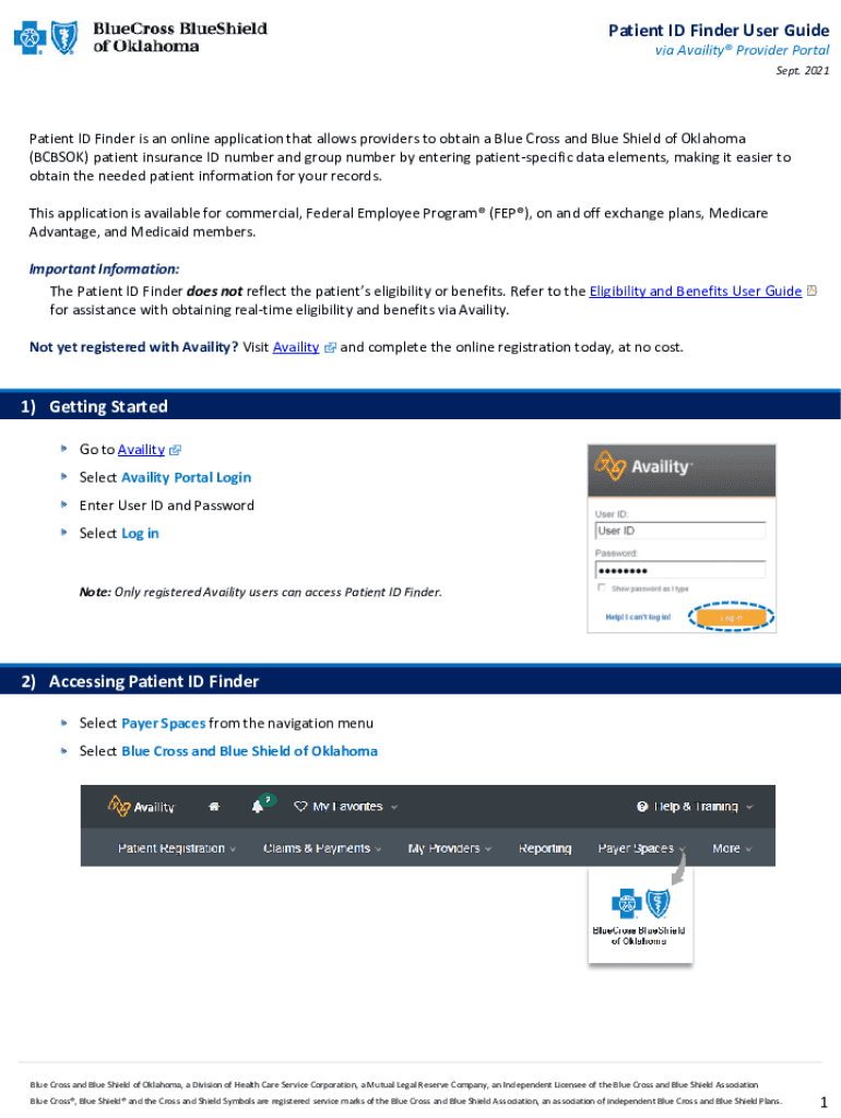 Patient ID Finder User Guide via Ability Provider Portal Sept. 2021Patient ID Finder is an online application that allows providers to obtain a Blue Cross and Blue Shield of Oklahoma (BCBS) patient