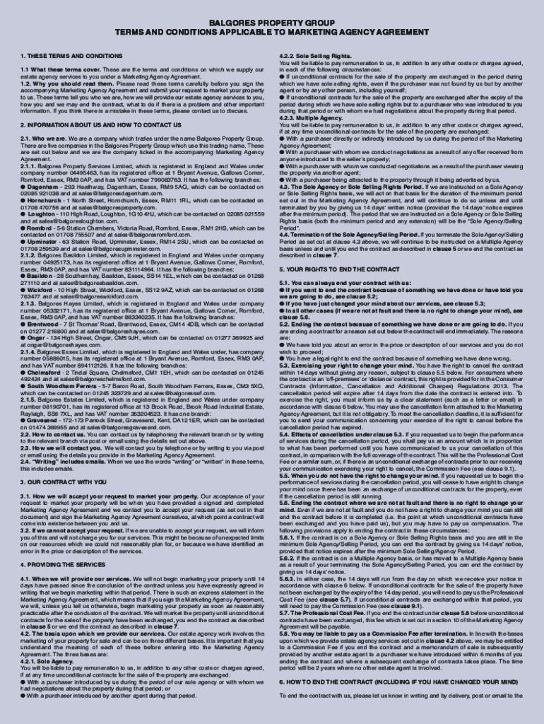 BADGES PROPERTY GROUP TERMS AND CONDITIONS APPLICABLE TO MARKETING AGENCY AGREEMENT 1. THESE TERMS AND CONDITIONS 1.1 What these terms cover. These are the terms and conditions on which we supply