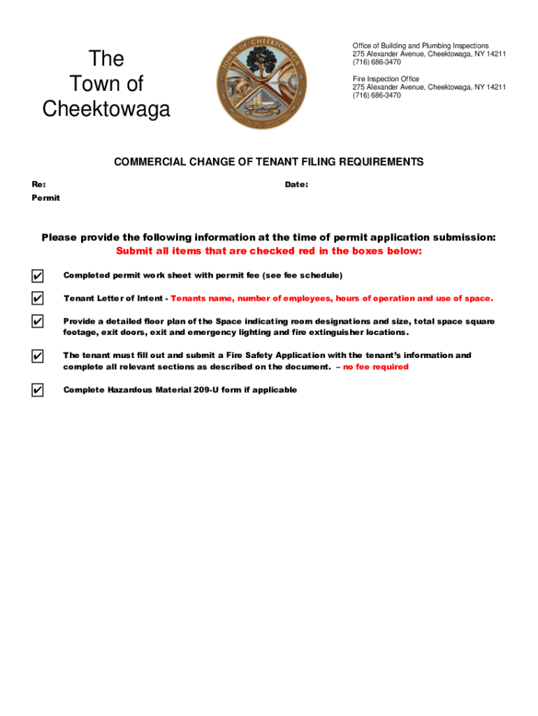 Office of Building and Plumbing Inspections 275 Alexander Avenue, Cheektowaga, NY 14211 (716) 6863470The Town of CheektowagaFire Inspection Office 275 Alexander Avenue, Cheektowaga, NY 14211 (716)
