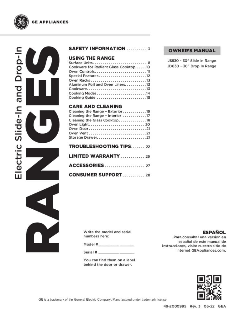 RANGESElectric Slide In and DropInSAFETY INFORMATION.......... 3USING THE Resurface Units. . . . . . . . . . . . . . . . . . . . . . . . . . . 8