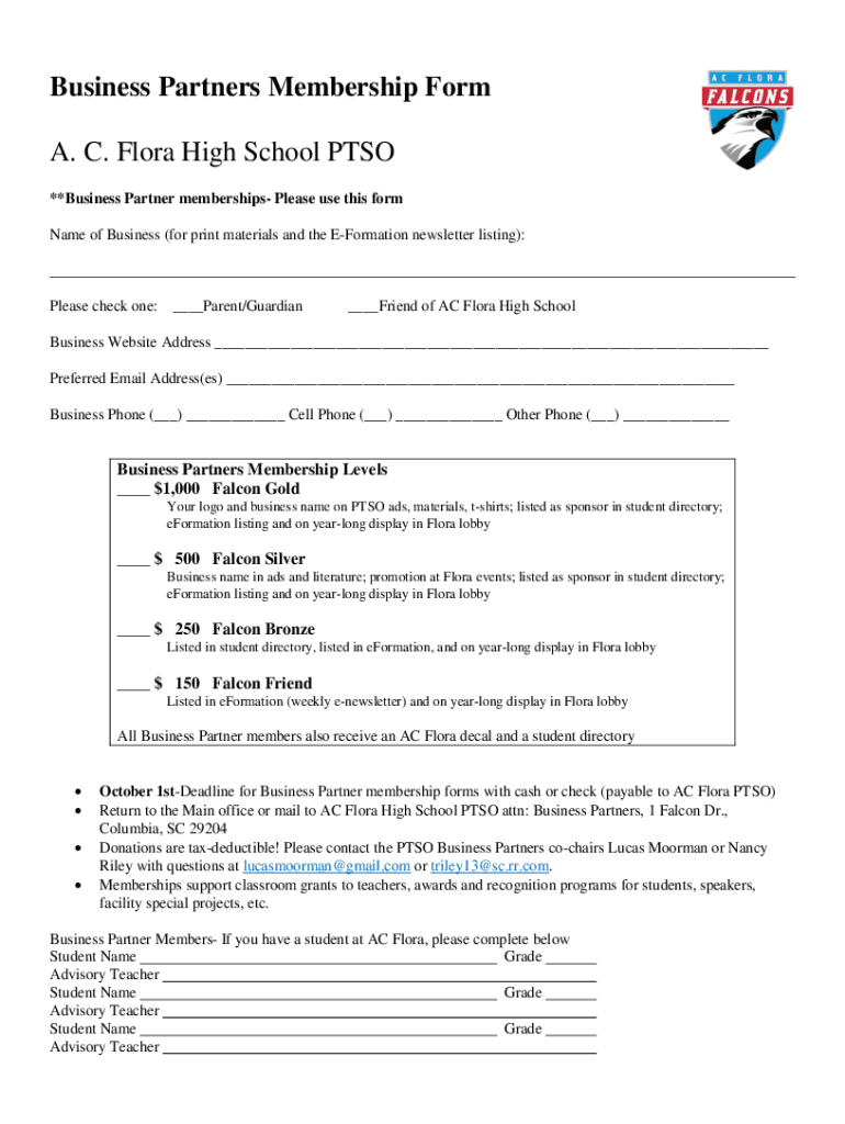 Get the free Business Partners Membership Form A. C. Flora High ...