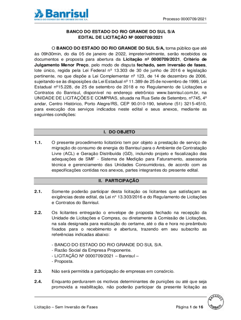 Process 0000709/2021BANCO DO ESTATE DO RIO GRANDE DO SUL S/A
